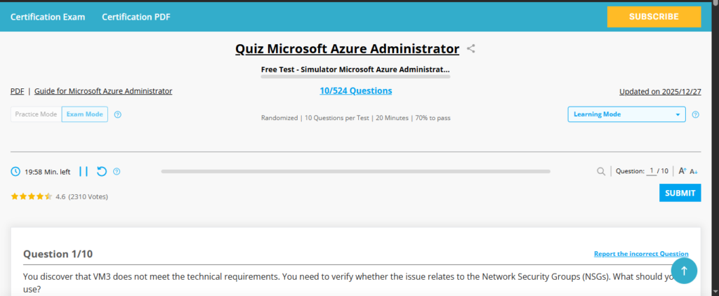 Becoming certified as a Microsoft Azure Administrator is one of the biggest accomplishments for IT professionals today, due in large part to the rapid growth of cloud computing and the ability to demonstrate proficiency in managing complex cloud environments. However, passing the AZ-104 certification exam is very hard, as it focuses on testing actual ‘hands-on’ skills instead of requiring rote memorization or theoretical knowledge. For this reason, most candidates seek additional help to ensure they pass the AZ-104 dumps on their first attempt, such as using downloaded dumps that allow them to learn more about the types of questions and format of the exam.